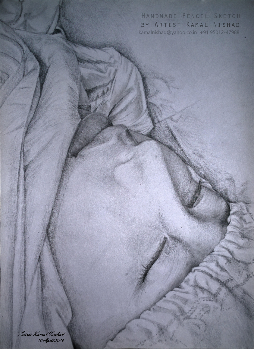 This is a Handmade Pencil Sketch “A FRIEND FROM CHINA” / “SLEEPING BEAUTY”.