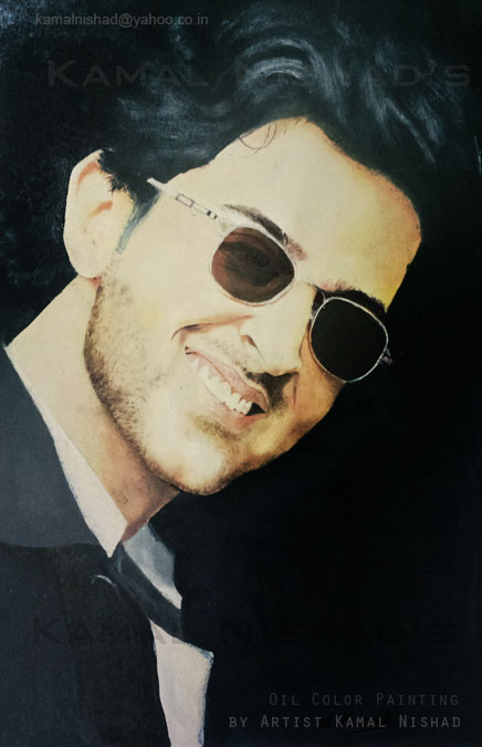 This is a Handmade Oil color Painting, A portrait of an Indian actor “Hrithik Roshan”.